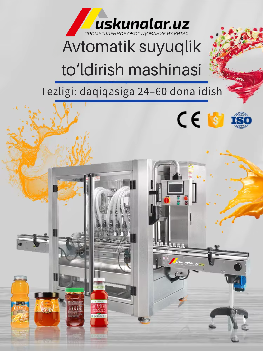 👉 Avtomatik butilka to‘ldirish uskunasi yordamida suv to‘ldirish, sharbat to‘ldirish, sut to‘ldirish, yog‘ to‘ldirish, sirka to‘ldirish jarayonlarini tez, aniq va ishonchli qiling — zamonaviy texnologiya bilan ishlab chiqarishingizni yangi bosqichga olib chiqing!